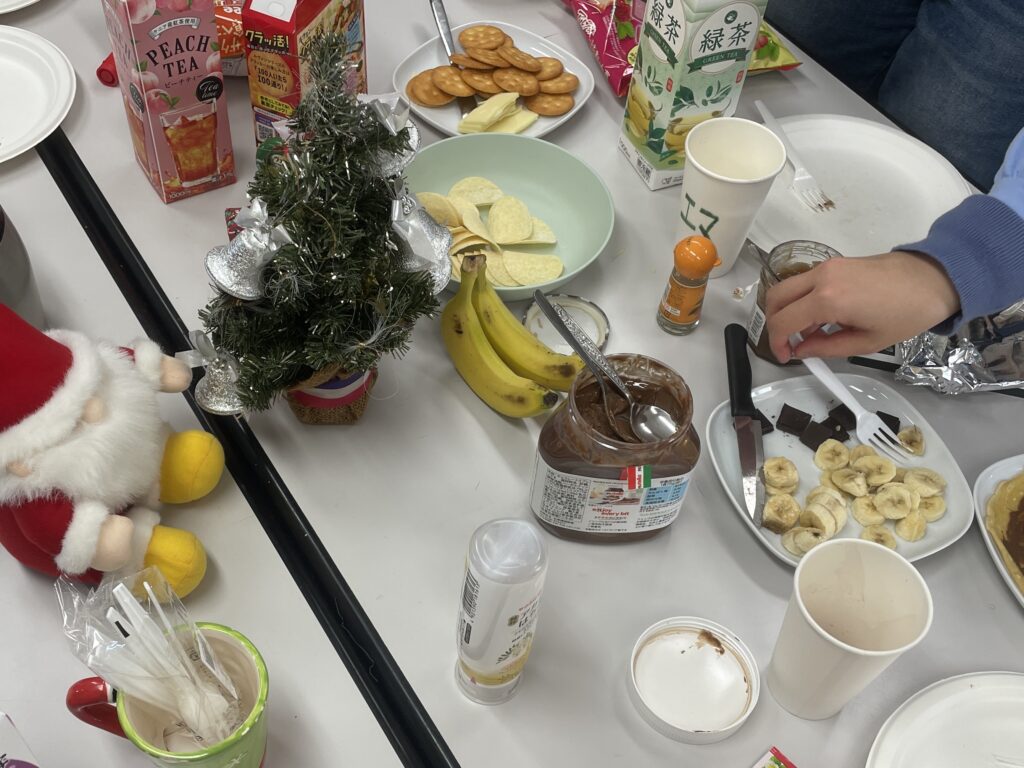 クリスマスソングを聴きながらクレープに好きなトッピングをしたり、お喋りをしたりと、とても素敵な会になりました。