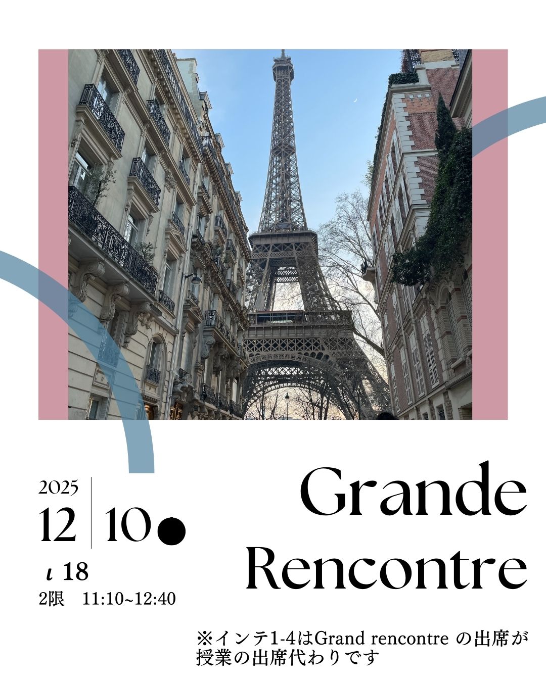 Bonjour! フランス語インテンシブ履修者の皆様に Grande rencontre のお知らせです。